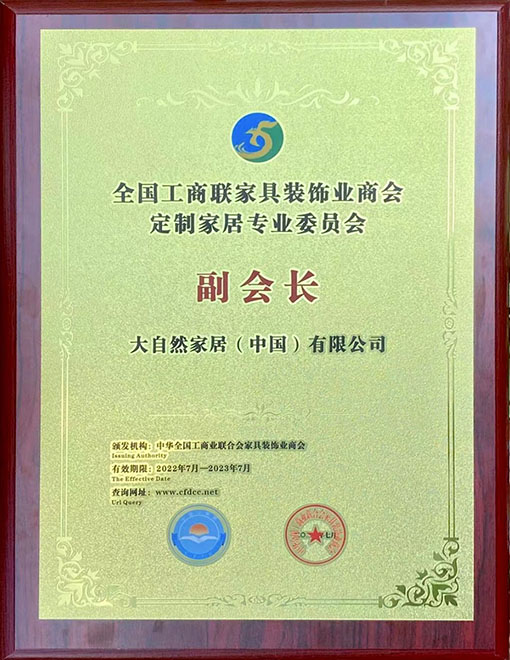 大自然家居當(dāng)選“全國工商聯(lián)家具裝飾業(yè)商會定制專委會副會長”