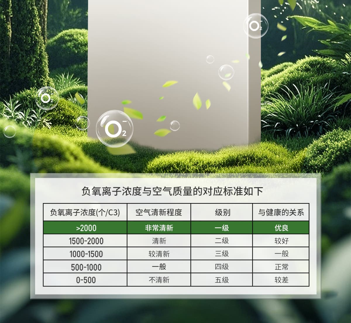 誘發(fā)空氣負(fù)離子量 比基礎(chǔ)環(huán)境提高10倍+